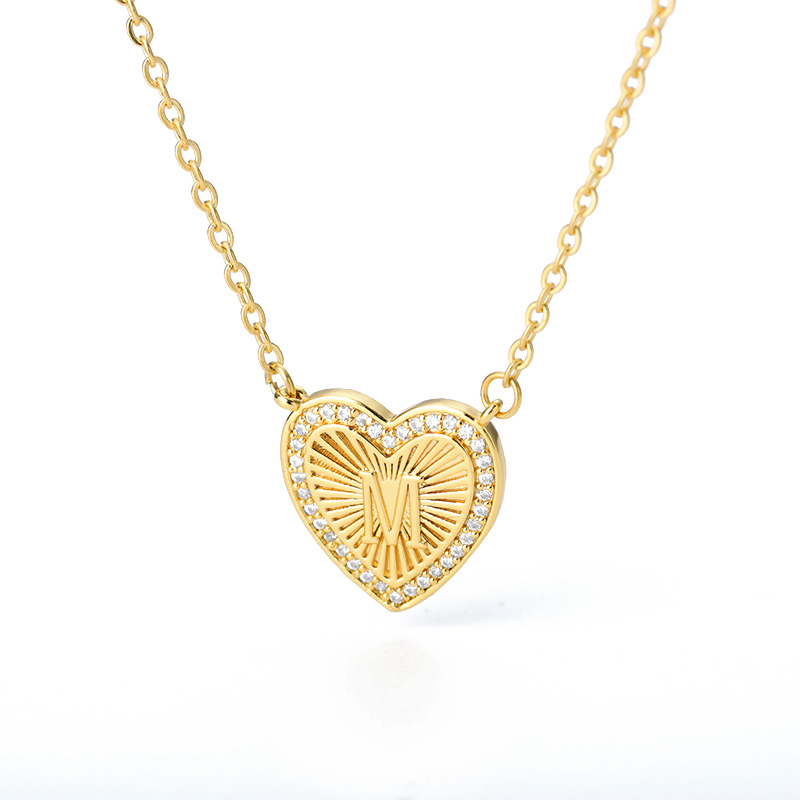 Zircon A-Z Heart Initial Letters Necklaces For Women Men Color Chain Female Pendant Necklaces Wedding Jewelry Bijoux Femme M-45cm